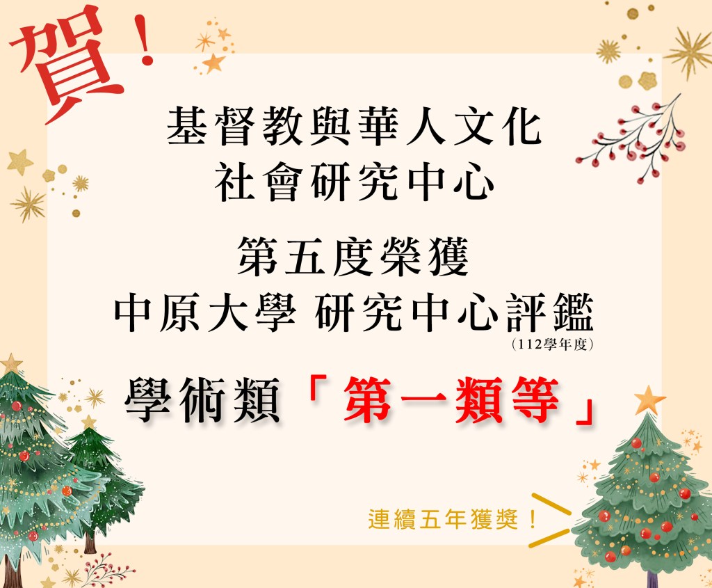 賀!本中心第五度榮獲 中原大學度研究中心評鑑 學術類「第一類等」(112學年度)