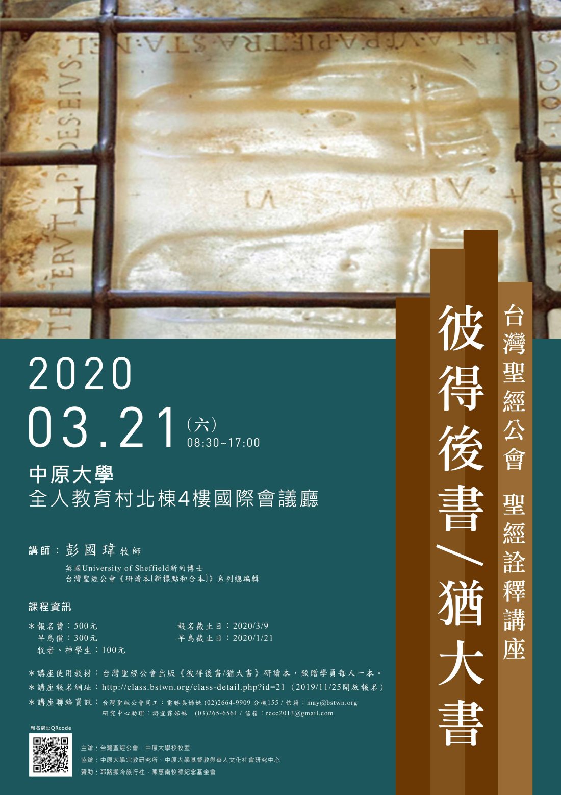 台灣聖經公會│聖經詮釋講座【彼得後書/猶大書】 台灣聖經公會首次在到中原大學舉辦聖經詮釋講座! . 📚如果你想 … 繼續閱讀 講座:台灣聖經公會│聖經詮釋講座【彼得後書/猶大書】